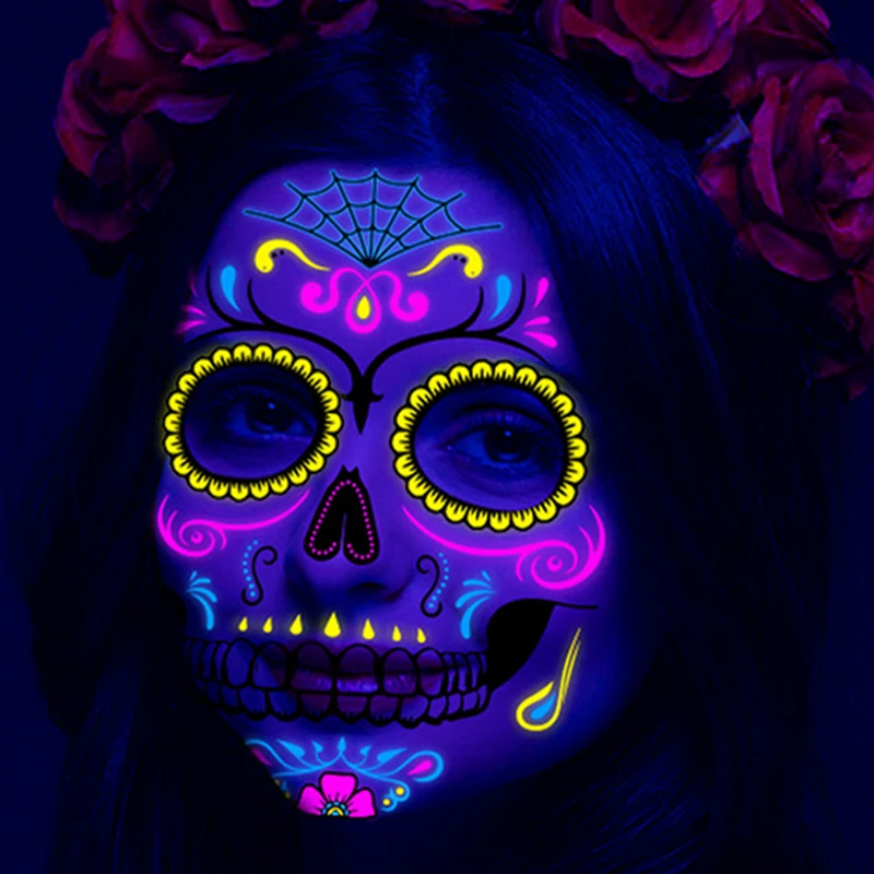 Day of the Dead Temporary Fluorescent Face Tattoos Halloween Sticker Flower False Tattoo Festival Party Body Sticker Waterproof