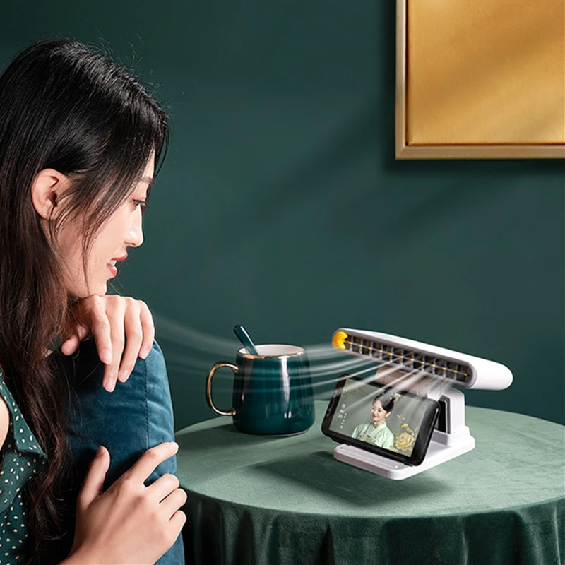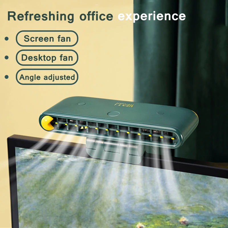 1. Leafless air cooling fan,2 in 1 use,can be clipped on the computer and put on the table.