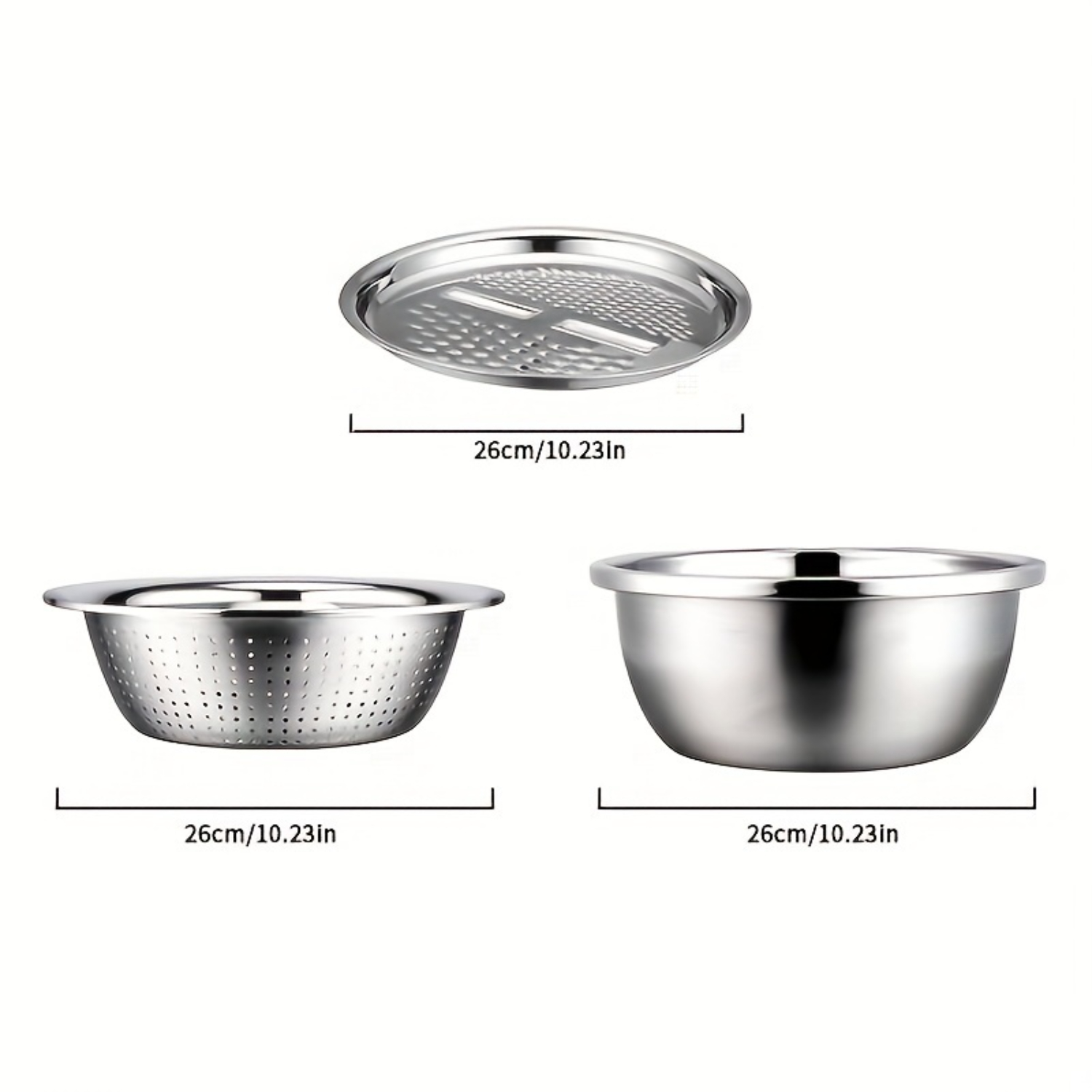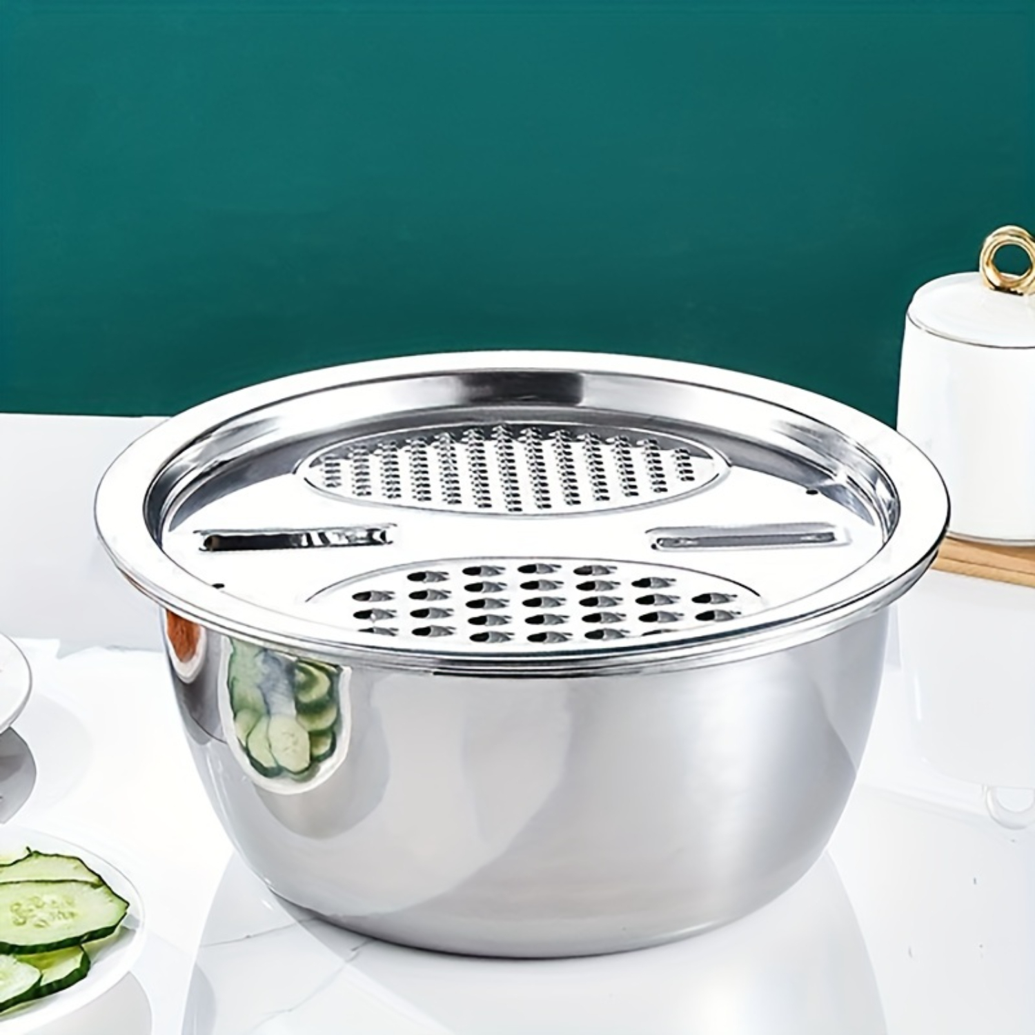 3-Piece Stainless Steel Kitchen Genius Set - Effortless Vegetable Slicer, Fruit Cutter, Grater & More