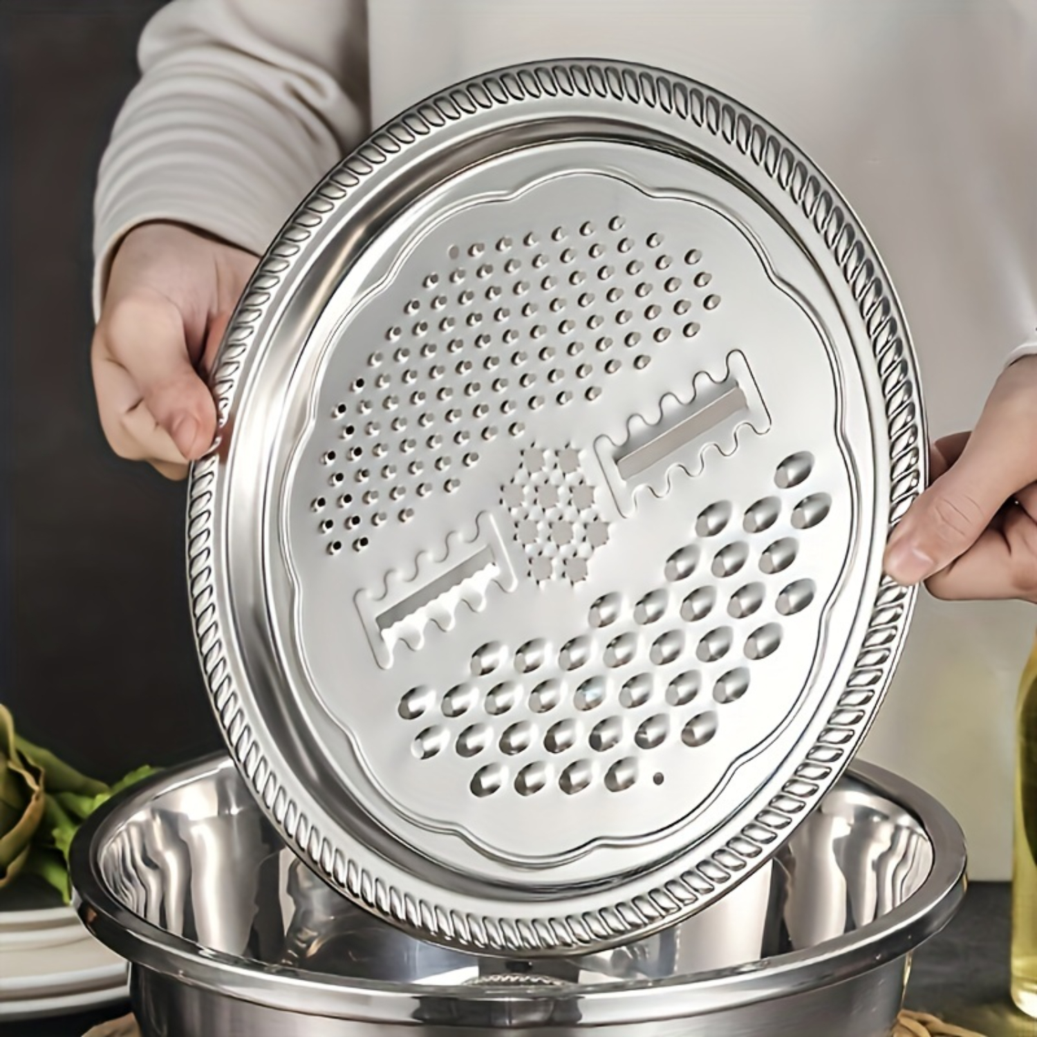 5. Save time in the kitchen with this professional-grade 3-Piece Stainless Steel Kitchen Genius Set. Perfect for slicing, dicing, and grating, this versatile kitchen tool is designed for easy storage and effortless food preparation.