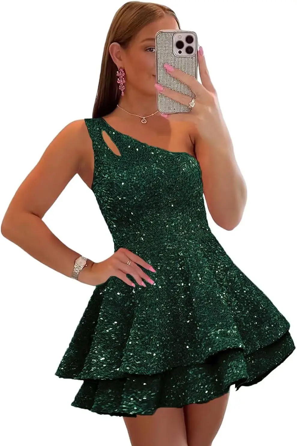 One Shoulder Sequin Homecoming Dresses 2025 Short Sparkly Tiered Cocktail Party Gown for Teens Mini HOCO Girls Schoold Dress